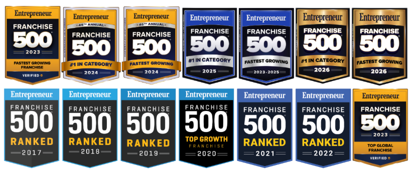 - Entrepreneur Magazine Ranked Franchise 500 – #1 in Category – Three Years Running